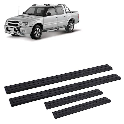 A soleira Injetada desenvolvida pela Camper, produto fabricado especialmente para seu veículo, sem que ocorra a danificação do produto devido ao fluxo de motorista e passageiros, no ato do embarque e desembarque. Além de sua importância na conservação. Produto fabricado em plástico injetado em alta qualidade e durabilidade, possui textura antiderrapante, proporcionando assim maior segurança, conta com excelente acabamento personalizado. Além de ser produzido com encaixe perfeito para seu veículo, instalado sobre superfície limpa e seca, garantindo a melhor fixação do produto. Especificações: Produto na cor preto. Fabricadas em plástico injetado. Fácil Instalação. Textura Antiderrapante. Fixação por fita 3m dupla face. Possui 4 Peças. Medidas da soleira dianteira: 78,5 Cm X 8 Cm. Medidas da soleira traseira: 44,5 Cm X 8 Cm. Conteúdo da Embalagem: 02 - Soleiras Dianteiras. 02 - Soleiras Traseiras. Compatível com: S10 1995 à 2011. compatível para todas as versões Cabine Dupla . Garantia de 03 meses, contra defeitos de fabricação. Imagens ilustrativas. Recomendamos que a instalação seja realizada por um profissional. ----------------------------- ----------------------------- Este produto é vendido e entregue pela TEXAS 4X4 A maior rede de lojas com os menores preços em acessórios para Motos, Carros Sedan e Hatch, SUVs e Pick-ups Atenção: As compras realizadas em nome de Pessoa Jurídica estão sujeitas à cobrança de ICMS, conforme Protocolo ICMS 41, de 4 de Abril de 2008. Caso você tenha dúvidas sobre o percentual a ser aplicado, consulte a Cláusula Segunda, 1 do referido Protocolo.
