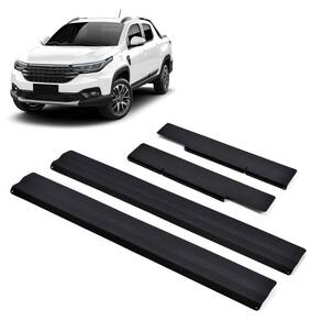 Especificação técnica: Alta resistência. Pintura eletrostática na cor preta. Rigoroso controle de qualidade. Maior cobertura da área das soleiras. Corte e escrito em alto relevo. Identificação do modelo de cada soleira. Não deixa rebarba por ser cortado a laser. Fabricado em alumínio de 1mm de alta qualidade. Fixação por fita dupla face, a melhor do mercado. Tamanho dianteira: 46 cm x 6 cm cxa . Tamanho traseira: 32 cm x 5 cm cxa .