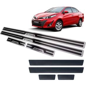 Soleiras Alto Relevo Toyota Yaris 2018 2019 + Vinil Preto