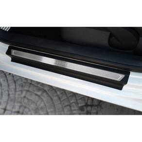 Fabricado em aço inox 304 o kit soleiras, vinil, pedaleiras e descanso de pé além de ajudar a proteger o local onde há o desgaste devido o calçado ficar o tempo todo esfregando, deixará o interior do veículo personalizado e com muito mais estilo.