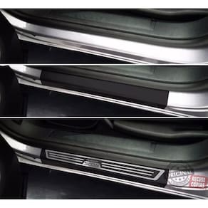 Fabricado em aço inox 304 o kit soleiras, vinil, pedaleiras e descanso de pé além de ajudar a proteger o local onde há o desgaste devido o calçado ficar o tempo todo esfregando, deixará o interior do veículo personalizado e com muito mais estilo.