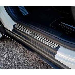 Fabricado em aço inox 304 o kit soleiras, vinil, pedaleiras e descanso de pé além de ajudar a proteger o local onde há o desgaste devido o calçado ficar o tempo todo esfregando, deixará o interior do veículo personalizado e com muito mais estilo.