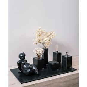 Produzido à mão por talentosos artesãos em Minas Gerais, este elegante Solitário pode ser utilizado com flores naturais (com o uso de um tubete para água) ou com flores preservadas. Cada peça é única devido a uma característica especial: os veios do mármore; sendo uma pedra natural, nenhuma peça tem exatamente o mesmo desenho, tornando os veios do mármore comparáveis a impressões digitais. Essa peculiaridade adiciona um charme exclusivo e faz de cada item uma verdadeira obra de arte.