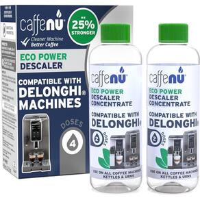 - Quando usar: o descalcificador Caffenu Delonghi contém 400 ml, o suficiente para 4 doses. Use uma dose a cada 2-4 meses para descalcificar sua máquina. O uso recomendado aumenta dependendo da dureza da água em sua área. Nosso descalcificador Delonghi para máquinas de café funciona bem com nossos cápsulas de limpeza Caffenu Use este líquido descalcificante de café para descalcificar os depósitos de calcário e cálcio dos componentes internos da sua máquina.