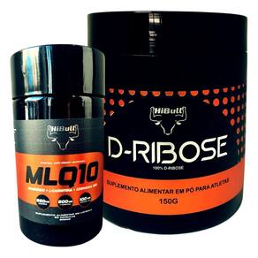 Contém 1 frasco de mlq10 com 800mg cada cápsula + 1 pote de d-ribose com 150g.