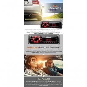 Som Automotivo Mondial Blueth 180w Rms - Entradas Usb Sd Aux Mp3 Som automotivo é a cada dia mais essencial. Não dá para ficar sem, principalmente em dias com muito trânsito. Seja para te informar ou para tocar suas músicas preferidas, o Som Automotivo Mondial é uma excelente opção para seu carro. Com ótimo custo-benefício, apresenta potência de 180W RMS e conexão via Blueth. Quando o trajeto não é só um simples caminho de passagem: som automotivo, o seu som transformando o seu dia-a-dia. Som automotivo Mondial vai com conexão Blueth, entradas USB e SD, entrada auxiliar e MP3. Especificações Técnicas:Potência (em Watts): 180WBlueth: SimRádio FMEntrada USB/Sd cardEntrada AuxiliarReproduz MP3Acompanha um controle remotoDimensões sem embalagens(AxLxP): 5.8 x 18.3 x 15.5 cmDimensões com embalagens(AxLxP): 8.2 x 20.3 x 19.4 cmPeso Líquido: 0.6 KgPeso Bruto: 0.725 Kg Ean: 7899882304282