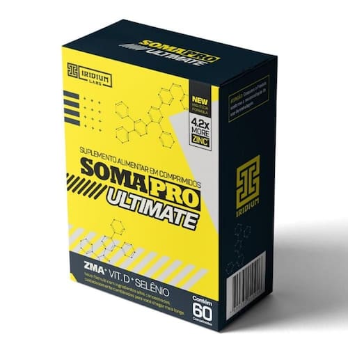 Soma Pro Ultimate (60 Comps) - Padrão: único Soma Pro Ultimate (60 comps) - Iridium Labs SomaPro Complex Activator é um suplemento alimentar para atletas que buscam aumento de massa e definição muscular. Possui uma fórmula exclusiva que fez ele ser o mais procurado do Brasil. O objetivo da fórmula do Soma-Pro é juntar ingredientes que realmente aumentam a liberação de testosterona e melhoram o aproveitamento da substância para o organismo. Soma Pro (antigo Somatodrol) conta com: Arginina e Ornitina são aminoácidos bastante utilizados por atletas BodyBuilding pois auxiliam na regenração e fortalecimento do tecido muscular, principalmente após os exercícios. A Arginina e a Ornitina possuem efeitos musculares com eficiência e também estão ligadas no aumento dos níveis do hormônio do crescimento (GH). Atua diretamente na hipertrofia muscular e retarda a fadiga; O boro aumenta a liberação e concentração de Testosterona, além de ser importante para a saúde dos ossos. O zinco é um mineral com grande importância no organismo, como o crescimento celular; A vitamina B6 auxilia no metabolismo de proteínas e gordura. Favorece a respiração celular, formação da hemoglobina e é retida principalmente nos músculos; O magnésio diminui o cansaço e a fadiga. Ajuda também na síntese proteica; E o Zingiber Officinale e Syzygium Aromaticum diminuem as dores musculares e possuem ação termogênica. Como citado acima, o SomaPro aumenta os níveis de testosterona e ajuda na síntese de GH. Muita gente tem medo de que o Soma Pro tenha efeitos colaterais. Será que ele é perigoso? O Soma Pro NÃO é um anabolizante, ele é um ativador hormonal. A venda e consumo no Brasil são liberados pela Anvisa, não tendo problema seu uso tanto para homens quanto para mulheres, desde que o uso seja como o recomendado. Benefícios:* Aumenta a liberação de testosterona no sangue;* Aumenta a força e a libido;* Diminui a incidência de câimbras e a tensão muscular;* Acelera a regeneração muscular depois do treino;* Regula a atividade hormonal, em especial do GH;* Melhora a resistência muscular.