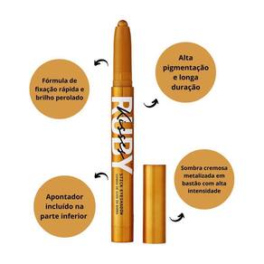 A Sombra para Olhos em Barra Stick Eyeshadow possui fórmula de fixação rápida e brilho perolado de longa duração adiciona dimensão e drama aos olhos. Pode usar como sombra, destaque e até delineador. Apontador incluído na parte inferior para ajudar na aplicação fácil e precisa. Sombra cremosa metalizada em bastão com alta pigmentação e intensidade.
