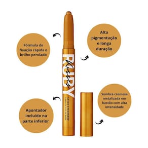 A Sombra para Olhos em Barra Stick Eyeshadow possui fórmula de fixação rápida e brilho perolado de longa duração adiciona dimensão e drama aos olhos. Pode usar como sombra, destaque e até delineador. Apontador incluído na parte inferior para ajudar na aplicação fácil e precisa. Sombra cremosa metalizada em bastão com alta pigmentação e intensidade.