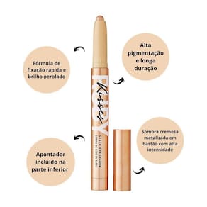 A Sombra para Olhos em Barra Stick Eyeshadow possui fórmula de fixação rápida e brilho perolado de longa duração adiciona dimensão e drama aos olhos. Pode usar como sombra, destaque e até delineador. Apontador incluído na parte inferior para ajudar na aplicação fácil e precisa. Sombra cremosa metalizada em bastão com alta pigmentação e intensidade.