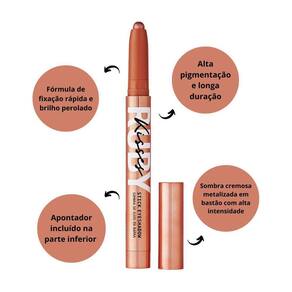 A Sombra para Olhos em Barra Stick Eyeshadow possui fórmula de fixação rápida e brilho perolado de longa duração adiciona dimensão e drama aos olhos. Pode usar como sombra, destaque e até delineador. Apontador incluído na parte inferior para ajudar na aplicação fácil e precisa. Sombra cremosa metalizada em bastão com alta pigmentação e intensidade.
