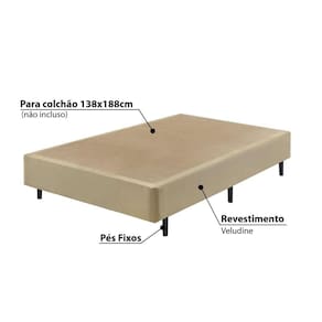 Um Sommier de respeito! A melhor escolha para complementar a sua cama box, além de ser lindo, traz um charme inigualável! O Sommier Veludine foi desenvolvido pensando no seu descanso e na qualidade do seu sonho. Uma peça resistente e firme para noites mais seguras. Tem pés fixos com 15 cm cada na cor tabaco, e é todo produzido em madeira reflorestada e o revestimento fica por conta de um lindo tecido Veludine. Madeira Maciça Uma opção excelente para quem procura móveis atraentes, requintados, únicos e com sofisticação. Esse tipo de móvel é sinônimo de qualidade e longa vida útil e, em um momento em que a sustentabilidade está em pauta, os móveis de madeira maciça podem ser uma boa alternativa ecológica, devido ao seu bom manejo e o benefício da reutilização. Assim, além de economia e exclusividade na decoração, um ambiente decorado com móveis de madeira maciça é, também, sinônimo de cuidado com o meio ambiente. A madeira maciça oferece mais resistência ao desgaste natural do tempo e maior durabilidade, por causa de suas características naturais e maior resistência à água. Garantia 03 meses - garantia de fábrica Características - Bege - Estrutura de madeira eucalipto - Para colchão casal 138x188 cm (não incluso) - Revestimento Veludine - 7 Pés fixos com 15 cm Tabaco, sendo 1 central - Marca: Ecoflex Dimensões Peso: 29,16 kg Altura com os pés: 40 cm Largura: 138 cm Profundidade: 188 cm Outras Informações - Montagem não inclusa. - Na limpeza não utilizar produtos químicos e abrasivos, usar apenas um pano umedecido, para garantir a maior durabilidade do móvel. - Os objetos que ambientam as fotos não acompanham o produto. - Imagens meramente ilustrativas. Cores e tonalidades podem variar. - Antes de comprar o seu produto verifique as medidas, o local onde pretende instalar e se é necessário contratar o serviço de um profissional qualificado. Sobre a marca A Ecoflex, fundada em março de 1987, é hoje uma marca conceituada no mercado e reconhecida pelo elevado padrão dos seus produtos. É uma indústria que emprega avançadas tecnologias nos processos de fabricação e exerce rigoroso controle de qualidade de todas as matérias-primas que utiliza. Em 27 de março de 2004, a Ecoflex foi certificada na NBR ISO 9001:2008. Isso ocorreu com a implantação e utilização de um sistema de gestão de qualidade nas áreas de aplicação de projeto, desenvolvimento e fabricação de colchões de espumas, colchões de mola, camas sommier, travesseiros, bicamas, colchonetes, rolos de descanso e espumas industriais. Além disso, em Agosto de 2012 recebemos a certificação para toda a linha de Colchões de Espuma, de acordo com a portaria n79/2011 do Inmetro."