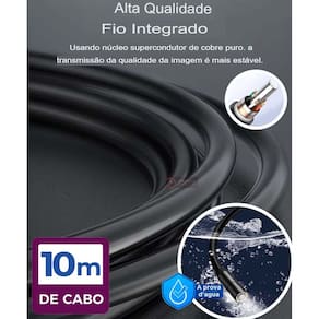 Cabo de 10 metros semi-rígido com condutor de cobre puro, que proporciona estabilidade e excelente transmissão de imagem.