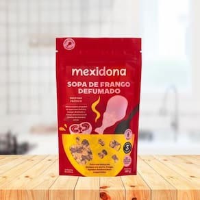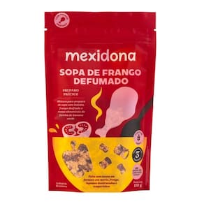 Sopa Frango Defumado MEXIDONA 110g A Sopa de Frango Defumado MEXIDONA 110g é a escolha perfeita para quem busca uma refeição leve, nutritiva e reconfortante. Com sabor delicioso e textura cremosa, essa sopa traz o aconchego das receitas da vovó, mas com a praticidade moderna. Feita com ingredientes 100% naturais, sem glúten, sem sal e sem conservantes, ela é ideal para quem deseja um jantar saudável, rápido e saboroso. Pronta em apenas 15 minutos, cada pacote rende 3 pratos de 250ml, com 127 kcal por porção. Você vai receber: 1 pacote de Sopa de Frango Defumado MEXIDONA 110g Ficha Técnica: Nome do Produto: Sopa de Frango Defumado MEXIDONA 110g Peso: 110g Rendimento: 1 pacote rende 3 pratos de sopa com cerca de 250ml cada. Tempo de Preparo: Pronta em 15 minutos. Calorias por Porção: 127kcal por prato. Embalagem: 100% Biodegradável. Ingredientes: Massa alimentícia de farinha de banana verde farinha de arroz, fécula de mandioca, farinha de banana verde, beterraba , batata desidratada, cebola desidratada, alho desidratado, frango desfiado desidratado, abóbora desidratada, tomate desidratado, páprica e páprica defumada. Características: Sem glúten Sem conservantes Sem glutamato MSG free Sem sal Sem leite Sem adição de gordura Benefícios: Nutrição Completa: A Sopa de Frango Defumado MEXIDONA é rica em fibras, graças à farinha de banana verde, que ajuda na saúde intestinal e proporciona maior . Praticidade: Pronta em 15 minutos, essa sopa é a opção ideal para jantares rápidos e nutritivos. Sabor Caseiro: Inspirada nas receitas tradicionais, essa sopa combina o sabor defumado do frango com a cremosidade da batata e da abóbora. Leve e Saudável: Sem conservantes, sem glúten, sem adição de gordura e com baixo teor calórico, ideal para quem busca uma refeição leve antes de dormir. Modo de Preparo: Ferva 1 litro 5 xícaras de chá de água. Adicione sal a gosto e despeje o conteúdo do pacote na panela. Dê uma Mexidona e deixe cozinhar por 15 minutos em fogo médio. O tempo de cozimento e a textura da sopa podem variar de acordo com o tipo de fogão, panela e intensidade do fogo. Utilize panelas mais altas e quase completamente tampadas. Rendimento: Um pacote serve 3 pratos de sopa com cerca de 250ml cada. Armazenamento: Conservar em local fresco e seco. Alergênicos: Pode conter aveia, amendoim, soja, amêndoa, avelã, castanha-de-caju, castanha-do-pará, nozes, pistache e castanhas. Não contém glúten. A Sopa de Frango Defumado MEXIDONA 110g é a sua escolha de comfort food saudável, perfeita para um jantar leve e saboroso Com 127kcal por prato, essa sopa é feita com ingredientes 100% naturais, sem glúten, conservantes ou sal, garantindo uma refeição prática, nutritiva e cheia de sabor.