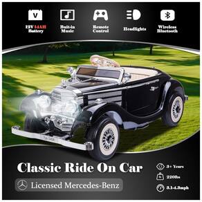 Veículos elétricos movidos a bateria 14AH Este carro esportivo clássico é alimentado por uma bateria poderosa de 12V , 14Ah que é construída para horas de reprodução e acionada por 4 rodas traseiras, oferece aos seus filhos uma boa experiência de condução e aproveite ao máximo. Aparência elegante e qualidade premium este carro de brinquedo é compatível com a Mercedes Benz. Apresentando um design de aparência vintage atraente e clássico, oferece aos seus pequenos prazer de condução superior e diversão real. Fabricado com um corpo de plástico PP durável e certificado pela ASTM F963. Esse é um presente perfeito para seus filhos no aniversário e no festival. Passeio de carro pai filho Este passeio no carro de brinquedo equipado com UM assento com cinto de segurança e assento extra para o modo pais, que está disponível para 2 crianças ou papai , mamãe com criança para brincar juntos. Mude o modo dos pais e pressione o botão verde no volante, depois aproveite seu lindo tempo entre pais e filhos, Capacidade de peso 100 kg Marca: Não Informado
