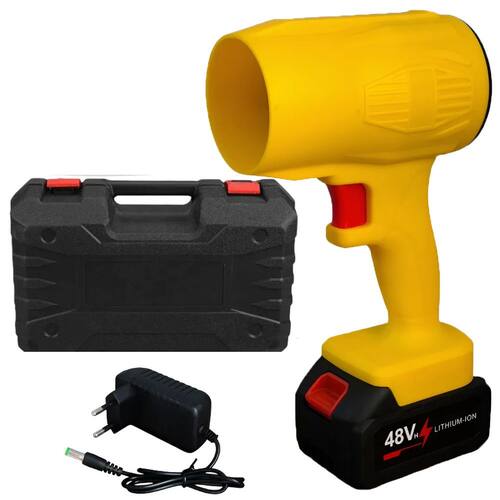 Compacto, leve e fácil de transportar, o soprador vem com maleta resistente para organização, além da bateria de 48V recarregável, garantindo maior autonomia e liberdade de uso sem depender de fios.