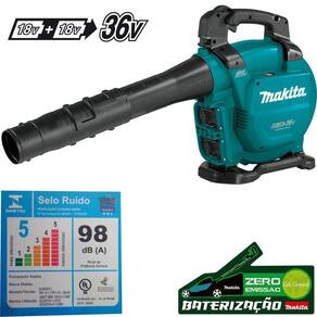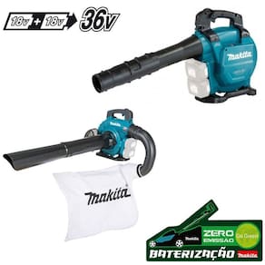 Soprador de folhas a bateria 36v 18v+18v dub363zv makita Características2 em 1: soprador e aspiradorIdeal para varrição e limpeza em condomínios, hotéis, resorts e espaços públicos, fabricas, telhados, etcNa função aspiração os detritos são triturados para diminuir o volume depositados no coletorResistente à água e poeira com a tecnologia xptMaior autonomia e desempenho das baterias com o motor bl2x mais desempenho operacional com a tecnologia 36v 18v + 18v Velocidade variávelControle eletrônico de velocidadePartida suaveCódigo/ modelo: dub363zvMarca: makitaEspecificações técnicasVolume máximo de ar: 13.4mminVelocidade máxima do ar: 65msRotações por minuto: 0 - 7.850Capacidade do coletor: 50lNível de pressão sonora: 84.8db a Nível de potência sonora: 98db a Dimensões c x l x a - com bico longo: 737786836 x 193 x 415mm- com bocal de vácuo: 1.396 x 604 x 415mmPeso: 6.6kgBateria: 18v - não inclusoEan: 088381889773 Itens inclusos1 - bolsa / reservatório;1 - cinto de ombro;2 - tubos;3 - pontas. Não acompanham bateria e carregador, esta versão é recomendada para quem já possui ferramenta a bateria da linha 18v lxt. Carregador e baterias recomendáveis:Carregador dc18rc - 197522-0 bivoltCarregador dc18sd - 197934-7 bivolt / carga rápidaCarregador duplo 127v dc18rd - 196928-9Carregador duplo 220v dc18rd - 196937-8Bateria 6.0ah bl1860b - 197422-4Bateria 5.0ah bl1850b - 197280-8Bateria 4.0ah bl1840b - 197265-4Bateria 3.0ah bl1830b - 197599-5Imagens meramente ilustrativas.Todas as informações divulgadas são de responsabilidade do fabricante/fornecedor