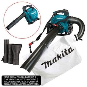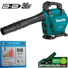 Soprador de folhas a bateria 36v 18v+18v dub363zv makita Características 2 em 1: soprador e aspirador Ideal para varrição e limpeza em condomínios, hotéis, resorts e espaços públicos, fabricas, telhados, etc Na função aspiração os detritos são triturados para diminuir o volume depositados no coletor Resistente à água e poeira com a tecnologia xpt Maior autonomia e desempenho das baterias com o motor bl 2x mais desempenho operacional com a tecnologia 36v 18v + 18v Velocidade variável Controle eletrônico de velocidade Partida suave Código/ modelo: dub363zv Marca: makita Especificações técnicas Volume máximo de ar: 13.4mmin Velocidade máxima do ar: 65ms Rotações por minuto: 0 - 7.850 Capacidade do coletor: 50l Nível sonora: 84.8db a Nível de potência sonora: 98db a Dimensões c x l x a - com bico longo: 737786836 x 193 x 415mm - com bocal de vácuo: 1.396 x 604 x 415mm Peso: 6.6kg Bateria: 18v - não incluso Ean: 088381889773 Itens inclusos 1 - bolsa / reservatório; 1 - cinto de ombro; 2 - tubos; 3 - pontas. Não acompanham bateria e carregador, esta versão é recomendada para quem já possui ferramenta a bateria da linha 18v lxt. Carregador e baterias recomendáveis: Carregador dc18rc - 197522-0 bivolt Carregador dc18sd - 197934-7 bivolt / carga rápida Carregador duplo 127v dc18rd - 196928-9 Carregador duplo 220v dc18rd - 196937-8 Bateria 6.0ah bl1860b - 197422-4 Bateria 5.0ah bl1850b - 197280-8 Bateria 4.0ah bl1840b - 197265-4 Bateria 3.0ah bl1830b - 197599-5 Imagens meramente ilustrativas. Todas as informações divulgadas são de responsabilidade do fabricante/fornecedor Marca: Não Informado