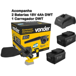 Kir composto de : 1 Soprador e Aspirador ISAV 1823 + 2 Baterias 18V 4Ah DWT + carregador de bateria