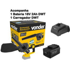 Kir composto de : 1 Soprador e Aspirador ISAV 1823 Vonder + 1 Bateria 18V 2Ah DWT + carregador de bateria