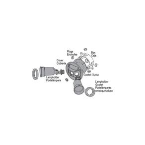 Requer duas lâmpadas PAR38 de 150 watts (no máximo) (não incluídas) e são compatíveis com a maioria das lâmpadas LED, incandescentes ou CFL - Inclui dois porta-lâmpadas, tampa redonda com três orifícios de 1/2 polegada, bujão de fechamento, juntas e hardware