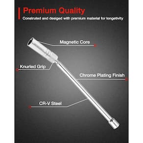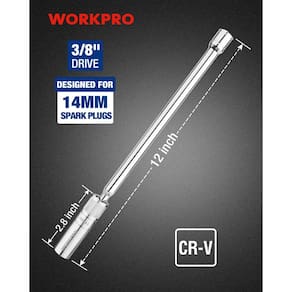 workpro Vela de ignição de 14 mm - Soquete de vela de ignição de 14 mm: WORKPRO tomada magnética giratória para vela de ignição é projetada para velas de ignição de 14 mm e tem 30 cm de comprimento. O diâmetro interno é de 10,8 mm, tornando-o conveniente para você comprar e usá-lo de acordo com o tamanho e a espessura da vela de ignição. Possui um design de 12 pontos que pode segurar os lados planos da cabeça do fixador, não nos cantos, para evitar arredondamentos - GARANTIA DE QUALIDADE: Este soquete de vela de ignição de parede fina é feito de aço cromo vanádio tratado termicamente, tem alta dureza e não é fácil de danificar ao girar. O acabamento espelhado cromado maximiza a longevidade da abrasão e resiste à ferrugem e à corrosão. - Design giratório de 360°: esta vela de ignição tem uma ação giratória de 360 graus para máxima flexibilidade, tornando espaços apertados facilmente acessíveis. Ângulo flexível, capaz de lidar com várias situações, economizando esforço e conveniência - Design de núcleo magnético: nosso conjunto de soquetes magnéticos giratórios está equipado com um núcleo magnético, o ímã retém e protege a vela de ignição para facilitar a instalação, garante que não perca facilmente o plugue ao longo do tempo e minimiza os danos - FÁCIL DE USAR: A tomada de parede fina giratória tem um design integrado e é usada para remoção e instalação de velas de ignição. Não inclui nenhum acessório. O comprimento estendido é mais fácil de usar. Possui um design de 12 pontos para maior poder de aderência, aderência serrilhada pode ajudá-lo a manter uma aderência firme para reduzir a chance de fadiga da mão - Atenção: Se você não tem certeza do tamanho da sua vela de ignição e não sabe como comprar o tamanho correspondente do soquete da vela de ignição, consulte o diâmetro interno e externo do soquete.