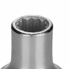 Este novo perfil melhora o acoplamento do soquete na porca ou parafuso, reduzindo as tensões geradas no aperto, prolongando a vida do soquete e do elemento de fixação.