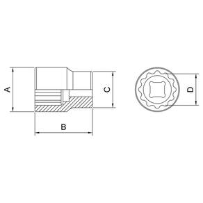 Os soquetes da Tramontina PRO são produzidos com sistema Hyper Drive que melhora o acoplamento do produto ao parafuso ou porca, reduzindo as tensões geradas no aperto e prolongando a sua vida útil. Escolha o tamanho e perfil ideal para a sua necessidade e mãos à obra. Orientações Soquete forjado em aço cromo vanádio e temperado. Acabamento cromado.Perfil Hyper Drive (de cantos arredondados). DIN 3124.Suporte plástico.Um grande avanço na produção dos soquetes é a introdução do conceito "Hyper Drive". Este novo perfil melhora o acoplamento do soquete na porca ou parafuso, reduzindo as tensões geradas no aperto, prolongando a vida do soquete e do elemento de fixação.Os soquetes são submetidos a testes rigorosos de torque e de dureza para atender a norma DIN 1711-1.Afrouxar e apertar parafusos e porcas sextavados.As ferramentas são produzidas e testadas conforme normas específicas. Observações Use óculos, luvas e outros equipamentos de proteção individual (EPIs) de acordo com a tarefa a ser executada. Selecione o tamanho do soquete conforme a bitola do parafuso ou porca. Para operações com parafusadeiras pneumáticas ou elétricas, use soquetes de impacto. Inspecione os soquetes antes de sua utilização. Soquetes que apresentam trincas ou desgaste excessivo devem ser substituídos. Armazene em local limpo e seco. Características Gerais EAN13 7891114025712 DUN14 17891114025719 NCM 8204.20.00 Peso Líquido 0,0300 kg. Peso Bruto 0,0300 kg. Metragem 0,000165 m³. Dimensões Embalagem (Compr. X Larg. X Alt.) 110x 50x 30 mm. Dimensões Produto (Compr. X Larg. X Alt.) 30x 26x 26 mm. Dimensão Extra A 26,0 mm. Dimensão Extra B 30,0 mm. Dimensão Extra C 26,0 mm. Dimensão Extra D 19,1 mm.