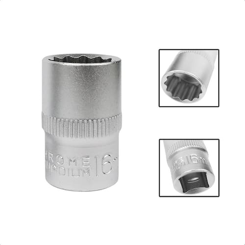 Soquete Estriado Encaixe 1/2 Pols CRV 16mm – Precisão e Durabilidade para Profissionais.