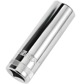 Soquete Estriado Longo 1/2"" 19mm - St13819 - Sata Soquete Estriado Longo 1/2 19mm St13819 Sata Soquete Estriado Longo 1/2 19mm - ST13819 - SATA Descrição: Fabricado com Liga Especial S2 composta por: aço níquel + molibidênio + vanádio. Soquete niquelado e cromado com ponta hexagonal.