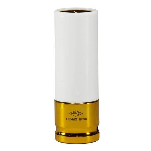 Soquete Impacto Individual -19 mm Corneta 3370119 - Fabricado em aço cromo-molibdênio - Com alojamento para pino e anel de segurança - Acabamento anodizado colorido - Possui luva plástica protetora PE: polietileno - Acompanha estojo injetado em PVC - Encaixe de 1/2 polegada - Dimensão: 85 mm - Sextavado: 19 mm