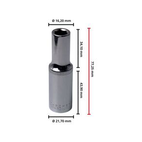 - 01 Soquete Longo de Encaixe 1/2” Sextavado 10mm.