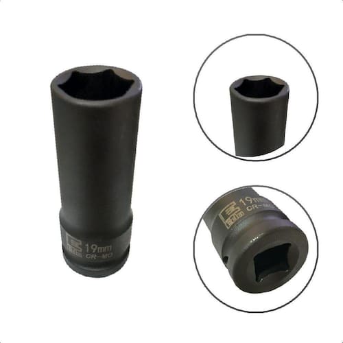Aumente sua eficiência com o Soquete Longo de Impacto Sextavado 19mm x 1/2'Pol em Aço de alta durabilidade. Potencialize seu trabalho com autoridade, contando com uma ferramenta exclusiva para projetos exigentes. Garanta já o seu. Não perca a oportunidade de experimentar a novidade executar tarefas com prazer. Compre agora e sinta a diferença Especificações: - Marca: EDA; - Modelo: 9SY; - Soquete Impacto Longo 1/2; - Comprimento: 75 mm; - Medidas: 19 mm; - Material: Forjado em aço cromo molibdênio e temperado com acabamento fosfatizado; - Indicação: parafusadeiras pneumáticas; - Possui alojamento para o pino de segurança; - Peso Aproximado: 204 g