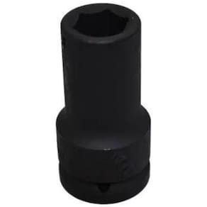 Aço-liga de alta resistência mecânica. Acabamento escurecido. Soquete extrarresistente, para trabalhar com máquinas pneumáticas e elétricas, com encaixe a 19,05 mm 3/4 , conforme DIN 3121 - G 20, ISO 1174. Apresenta alojamento para pino e anel de segurança.