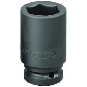 Aço-liga de alta resistência mecânica. Acabamento escurecido, bitola: 75 mm possui acabamento fosfatizado. Soquete extrarresistente, para trabalhar com máquinas de impacto, com encaixe quadrado externo 25,4 mm 1 , conforme DIN 3121 - G 25, ISO 1174. Indicado para parafusos e porcas com perfil de encaixe sextavado externo. Possui alojamento para utilização de pino e anel de segurança, a serem adquiridos à parte, de acordo com o modelo.