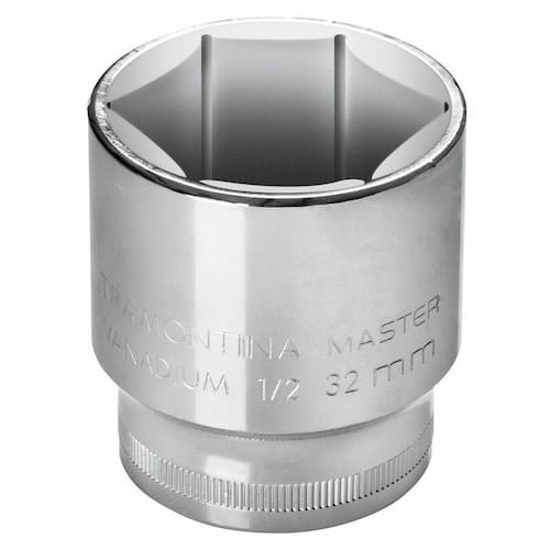 Soquete Sextavado 27 mm encaixe 1/2 Tramontina em Aço Cromo Vanádio com Acabamento Cromado
