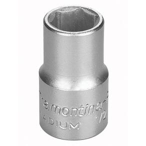 Os soquetes da Tramontina PRO são produzidos com sistema Hyper Drive que melhora o acoplamento do produto ao parafuso ou porca, reduzindo as tensões geradas no aperto e prolongando a sua vida útil. Escolha o tamanho e perfil ideal para a sua necessidade e mãos à obra. Orientações Um grande avanço na produção dos soquetes é a introdução do conceito "Hyper Drive". Este novo perfil melhora o acoplamento do soquete na porca ou parafuso, reduzindo as tensões geradas no aperto, prolongando a vida do soquete e do elemento de fixação.Soquete forjado em aço cromo vanádio e temperado. Acabamento cromado. DIN 3124. Os soquetes são submetidos a testes rigorosos de torque e de dureza para atender a norma DIN 1711-1.Afrouxar e apertar parafusos e porcas sextavados.As ferramentas são produzidas e testadas conforme normas específicas. Observações Use óculos, luvas e outros equipamentos de proteção individual (EPIs) de acordo com a tarefa a ser executada. Selecione o tamanho do soquete conforme a bitola do parafuso ou porca. Para operações com parafusadeiras pneumáticas ou elétricas, use soquetes de impacto. Inspecione os soquetes antes de sua utilização. Soquetes que apresentam trincas ou desgaste excessivo devem ser substituídos. - Armazene em local limpo e seco. Características Gerais EAN13 7891114026030 DUN14 17891114026037 NCM 8204.20.00 Peso Líquido 0,0500 kg. Peso Bruto 0,0500 kg. Metragem 0,000150 m³. Dimensões Embalagem (Compr. X Larg. X Alt.) 100x 50x 30 mm. Dimensões Produto (Compr. X Larg. X Alt.) 38x 22x 22 mm. Dimensão Extra A 19,0 mm. Dimensão Extra B 38,0 mm. Dimensão Extra C 22,0 mm. Dimensão Extra D 12,7 mm.