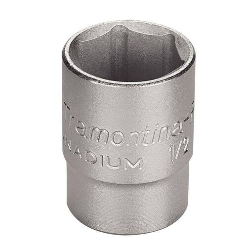 Os soquetes da Tramontina PRO são produzidos com sistema Hyper Drive que melhora o acoplamento do produto ao parafuso ou porca, reduzindo as tensões geradas no aperto e prolongando a sua vida útil. Escolha o tamanho e perfil ideal para a sua necessidade e mãos à obra. Orientações Um grande avanço na produção dos soquetes é a introdução do conceito "Hyper Drive". Este novo perfil melhora o acoplamento do soquete na porca ou parafuso, reduzindo as tensões geradas no aperto, prolongando a vida do soquete e do elemento de fixação.Soquete forjado em aço cromo vanádio e temperado. Acabamento cromado. DIN 3124. Os soquetes são submetidos a testes rigorosos de torque e de dureza para atender a norma DIN 1711-1.Afrouxar e apertar parafusos e porcas sextavados.As ferramentas são produzidas e testadas conforme normas específicas. Características Gerais EAN13 7891114026061 DUN14 17891114026068 NCM 8204.20.00 Peso Líquido 0,0458 kg. Peso Bruto 0,0520 kg. Metragem 0,000150 m³. Dimensões Embalagem (Compr. X Larg. X Alt.) 100x 50x 30 mm. Dimensões Produto (Compr. X Larg. X Alt.) 38x 24x 24 mm. Dimensão Extra A 24,0 mm. Dimensão Extra B 38,0 mm. Dimensão Extra C 24,0 mm. Dimensão Extra D 17,5 mm. Observações Use óculos, luvas e outros equipamentos de proteção individual (EPIs) de acordo com a tarefa a ser executada. Selecione o tamanho do soquete conforme a bitola do parafuso ou porca. Para operações com parafusadeiras pneumáticas ou elétricas, use soquetes de impacto. Inspecione os soquetes antes de sua utilização. Soquetes que apresentam trincas ou desgaste excessivo devem ser substituídos. Armazene em local limpo e seco.