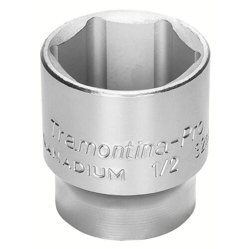 Os soquetes da Tramontina PRO são produzidos com sistema Hyper Drive que melhora o acoplamento do produto ao parafuso ou porca, reduzindo as tensões geradas no aperto e prolongando a sua vida útil. Escolha o tamanho e perfil ideal para a sua necessidade e mãos à obra. Orientações Um grande avanço na produção dos soquetes é a introdução do conceito "Hyper Drive". Este novo perfil melhora o acoplamento do soquete na porca ou parafuso, reduzindo as tensões geradas no aperto, prolongando a vida do soquete e do elemento de fixação.Soquete forjado em aço cromo vanádio e temperado. Acabamento cromado. DIN 3124. Os soquetes são submetidos a testes rigorosos de torque e de dureza para atender a norma DIN 1711-1.Afrouxar e apertar parafusos e porcas sextavados.As ferramentas são produzidas e testadas conforme normas específicas. Características Gerais EAN13 7891114025828 DUN14 17891114025825 NCM 8204.20.00 Peso Líquido 0,0600 kg. Peso Bruto 0,0600 kg. Metragem 0,000125 m³. Dimensões Embalagem (Compr. X Larg. X Alt.) 100x 50x 25 mm. Dimensões Produto (Compr. X Larg. X Alt.) 38x 22x 22 mm. Dimensão Extra A 17,8 mm. Dimensão Extra B 38,0 mm. Dimensão Extra C 22,0 mm. Dimensão Extra D 12,0 mm. Observações Use óculos, luvas e outros equipamentos de proteção individual (EPIs) de acordo com a tarefa a ser executada. Selecione o tamanho do soquete conforme a bitola do parafuso ou porca. Para operações com parafusadeiras pneumáticas ou elétricas, use soquetes de impacto. Inspecione os soquetes antes de sua utilização. Soquetes que apresentam trincas ou desgaste excessivo devem ser substituídos. Armazene em local limpo e seco.