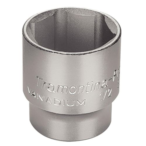 Os soquetes da Tramontina PRO são produzidos com sistema Hyper Drive que melhora o acoplamento do produto ao parafuso ou porca, reduzindo as tensões geradas no aperto e prolongando a sua vida útil. Escolha o tamanho e perfil ideal para a sua necessidade e mãos à obra. Orientações Um grande avanço na produção dos soquetes é a introdução do conceito "Hyper Drive". Este novo perfil melhora o acoplamento do soquete na porca ou parafuso, reduzindo as tensões geradas no aperto, prolongando a vida do soquete e do elemento de fixação.Soquete forjado em aço cromo vanádio e temperado. Acabamento cromado. DIN 3124. Os soquetes são submetidos a testes rigorosos de torque e de dureza para atender a norma DIN 1711-1.Afrouxar e apertar parafusos e porcas sextavados.As ferramentas são produzidas e testadas conforme normas específicas. Características Gerais EAN13 7891114133110 DUN14 17891114133117 NCM 8204.20.00 Peso Líquido 0,2550 kg. Peso Bruto 0,2550 kg. Metragem 0,000250 m³. Dimensões Embalagem (Compr. X Larg. X Alt.) 100x 50x 50 mm. Dimensões Produto (Compr. X Larg. X Alt.) 45x 44x 44 mm. Dimensão Extra A 44,0 mm. Dimensão Extra B 45,0 mm. Dimensão Extra C 36,0 mm. Dimensão Extra D 34,0 mm. Observações Use óculos, luvas e outros equipamentos de proteção individual (EPIs) de acordo com a tarefa a ser executada. Selecione o tamanho do soquete conforme a bitola do parafuso ou porca. Para operações com parafusadeiras pneumáticas ou elétricas, use soquetes de impacto. Inspecione os soquetes antes de sua utilização. Soquetes que apresentam trincas ou desgaste excessivo devem ser substituídos. - Armazene em local limpo e seco.