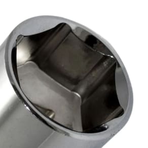 - A área interna apresenta perfil arredondado, o que melhora a distribuição de torque e deixa o soquete mais resistente.