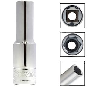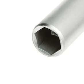 - A área interna apresenta perfil arredondado, o que melhora a distribuição de torque e deixa o soquete mais resistente.
