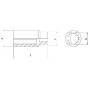 Soquete Sextavado Longo em Aço Cromo Vanádio 12 mm - Encaixe 1/2 Tramontina -