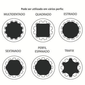 O soquete Techdrive da Tramontina PRO é sinônimo de versatilidade, pois seu formato especial permite o uso em 6 diferentes perfis de parafusos: multidentado, quadrado, estriado, sextavado, espanado ou trafix. Maior resistência e segurança em suas mãos.br /br /Soquete forjado em aço cromo vanádio e temperado. br /Acabamento cromado. br /DIN 3124. br /Os soquetes são submetidos a testes rigorosos de torque e de dureza para atender a norma DIN 1711-1.br /Afrouxar e apertar parafusos e porcas sextavados.br /As ferramentas são produzidas e testadas conforme normas específicas.br /br /br /Use óculos, luvas e outros equipamentos de proteção individual EPIs de acordo com a tarefa a ser executada. br /Selecione o tamanho do soquete conforme a bitola do parafuso ou porca. br /Para operações com parafusadeiras pneumáticas ou elétricas, use soquetes de impacto. br /Inspecione os soquetes antes de sua utilização. Soquetes que apresentam trincas ou desgaste excessivo devem ser substituídos. - Armazene em local limpo e seco.br /br /EAN13: 7891114083934br /DUN14: 17891114083931br /NCM: 8204.20.00br /Peso Líquido: 0,0800 kg.br /Peso Bruto: 0,0800 kg.br /Metragem: 0,000150 m.br /Dimensões Produto Compr. X Larg. X Alt. : 38x 26x 26 mm.br /Dimensão Extra A: 23,0 mm.br /Dimensão Extra B: 38,0 mm.br /Dimensão Extra C: 26,0 mm.br /Dimensão Extra D: 18,0 mm.br /br /br /Linha Comercial:br /Techdrive Ean: 7891114083934