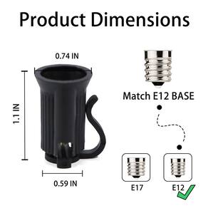Soquete de lâmpada de vela E12 E17, soquete de iluminação C7 C9 suporte de lâmpada de substituição de luz de corda de Natal, pacote com 100 - Especificação: Um pacote de 100 soquetes pretos c7, para a base da lâmpada c7 - Resistente: O soquete de substituição c7 é durável. É adequado para a base do candelabro de lâmpadas de vela de Natal - Fácil de instalar: abra a tampa da base, coloque o fio na ranhura, martele a tampa da base com um pequeno martelo, para que a linha fique presa na agulha da base e esteja pronta para funcionar - Use em combinação: você pode fazer você mesmo uma sequência retrô de luzes, usando nossos fios, lâmpadas e plugues, escolha sua cor favorita para adicionar mais luzes às suas luzes de corda de Natal - Faixa de aplicação: para fio SPT-1. O soquete de luz c7 é conveniente para você substituir a base da lâmpada pelas cordas de luzes a qualquer momento