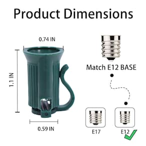 Soquete de lâmpada de vela E12 E17, soquete de iluminação C7 C9 suporte de lâmpada de substituição de luz de corda de Natal, pacote com 100 - Especificação: um pacote de 100 soquetes c7 verdes, para a base da lâmpada c7 - Resistente: o soquete de substituição c7 é durável. É adequado para a base do candelabro de lâmpadas de vela de Natal - Fácil de instalar: Abra a tampa da base, coloque o fio na ranhura, martele a tampa da base com um pequeno martelo, para que a linha fique presa na agulha da base e esteja pronta para funcionar - Use em combinação: você pode fazer uma sequência retrô de luzes, usando nossos fios, lâmpadas e plugues, escolha sua cor favorita para adicionar mais luzes às suas luzes de corda de Natal - ampla variedade de aplicação: Para fio SPT-1. A tomada de luz c7 é conveniente para você substituir a base da lâmpada com as luzes do cordão a qualquer momento