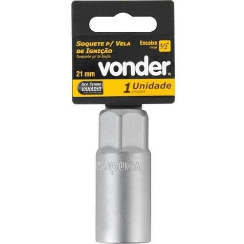Detalhes Técnicos: - Marca: Vonder - Acabamento do soquete:Cromado - Material do soquete:Aço cromo vanádio - Medida do encaixe quadrado do soquete:1/2 - Medida do soquete sextavado mm :21,0 mm Comprimento total do soquete:65,0 mm