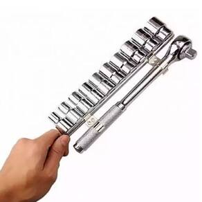 Kit Chave Catraca Soquetes 1/2 mm 86-734 com Suporte Catraca Reversível 11 PeçasO kit de Chaves e Cachimbos , é composto por 11 peças de excelente qualidade em aço cromo vanádio, soquetes estriados de até 19mm, extensão, chave catraca, cabo T, todos com encaixe de 1/2, além de chaves allen e bits. Melhor custo benefício do mercado.- Referência: 86-734- Encaixe: 1/2- Material: Aço Cromo Vanádio- Soquetes 1/2 com boca estriada- Catraca reversível- Garantia: 27 meses- Peso bruto: 1,35 KgConteúdo da Embalagem:Kit Chave Catraca Soquetes 1/2 mm 86-734 com Suporte Catraca Reversível 11 Peças