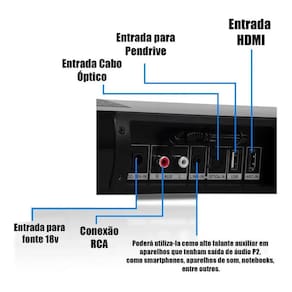 - Com Esse SoundBar você pode ouvir suas melhores musicas com conexões ; Bluetooth 5.0 Pendrive Hdmi Entrada Óptica P2 Line in Rca Auxiliar