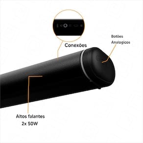 Contendo tecnologias Potência 100W, Bluetooth, HDMI (ARC), entrada aux., controle remoto, entrada de áudio óptica e coaxial, bivolt.